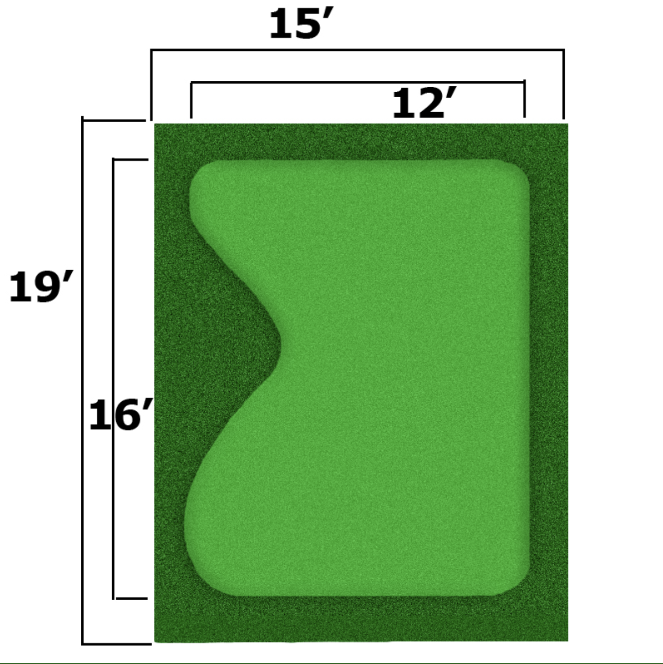 Symbior Putting Green Fringe is a great turf that simulates real grass and gives you a great chipping surface. The poly thatch gives this turf great buoyancy and makes this turf low maintenance and perfect for indoor settings.