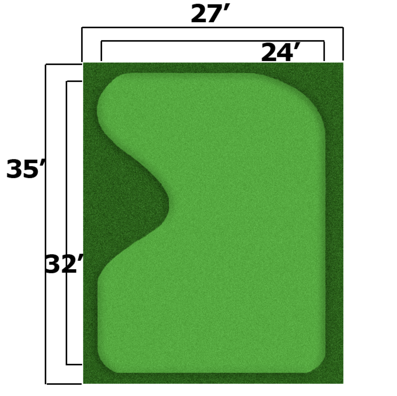 This is the premier synthetic putting green turf. It is constructed of nylon 6-6, the strongest synthetic putting green material available. The 8-12 end mono filament construction is the best known product that imitates the vein structure of real green grass. The speed of the putting green ranged from 9-11 on the stimp meter.