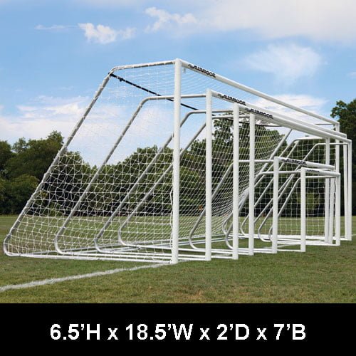 Goal is available in a variety of sizes to accommodate players of all skill levels. Back bottom bar is included with 24’, 21’ and 18.5’ wide models. Sold per pair.