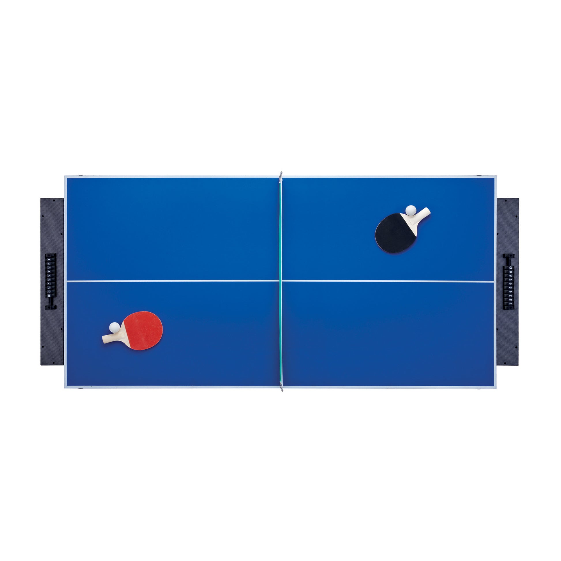 Includes all of the accessories needed to play the games you love such as pool cues and billiard balls, hockey pucks and pushers, and table tennis paddles and net.