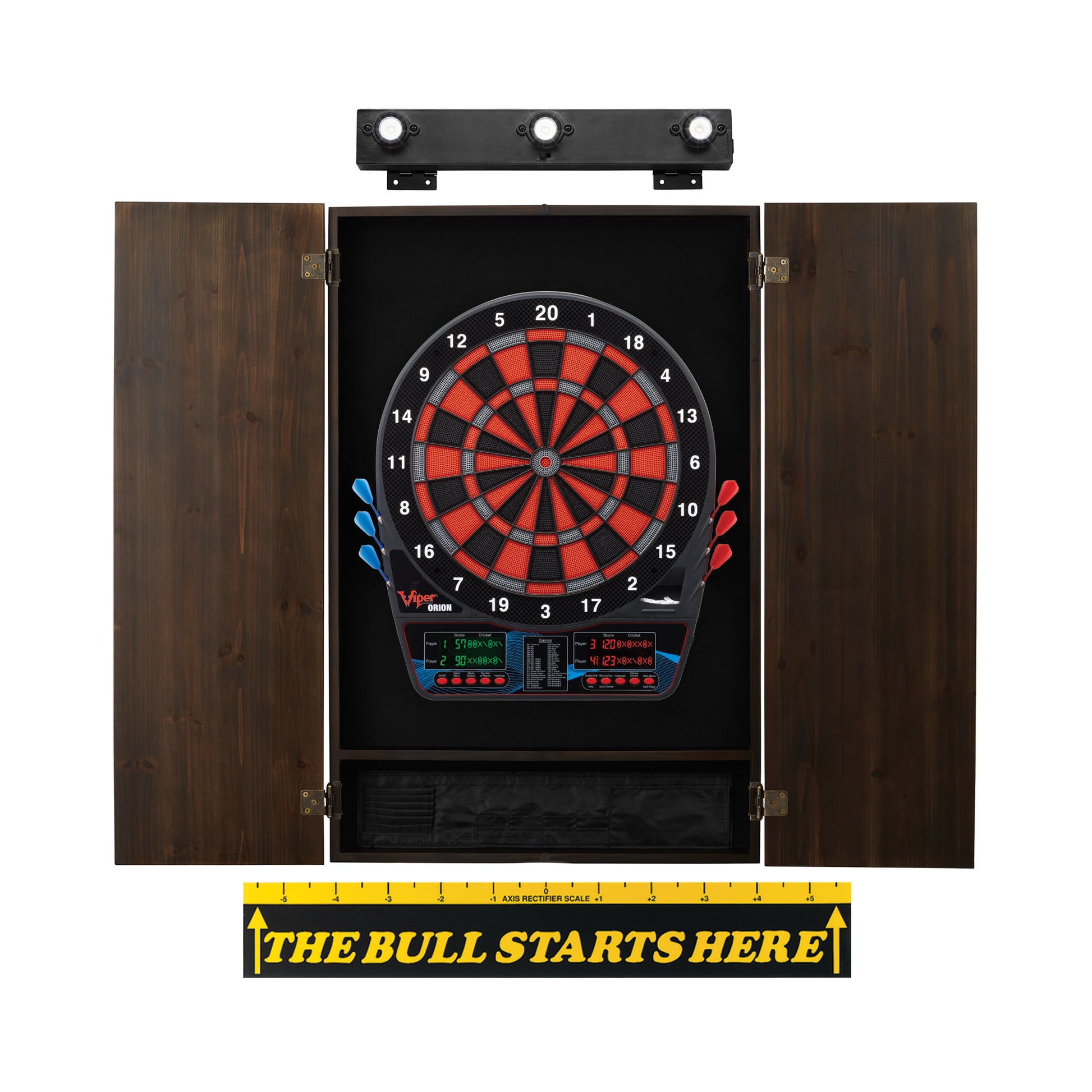 GLD Viper Orion Electronic Dartboard, Metropolitan Espresso Cabinet, Throw Line Marker & Shadow Buster Dartboard Light Bundle 40-9149