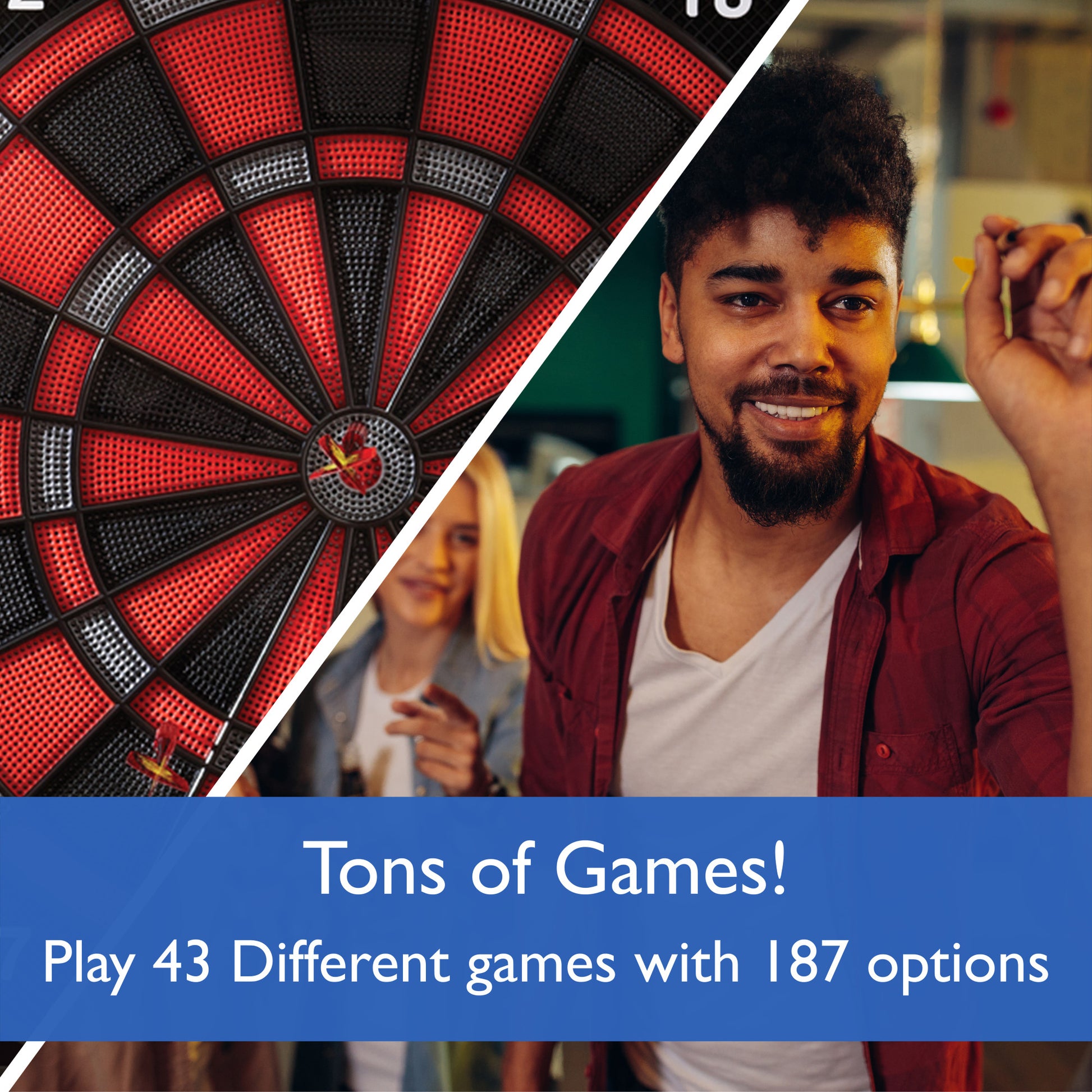 Enhanced Scoring Experience - Ultra-thin spider and extended catch ring make hitting your target easy and with automatic scoring you don’t need to worry about keeping track 43 Games for up to 16 Players - Includes popular games like 01, Cricket, and more; with over 180 scoring options and up to 16 player multiplayer