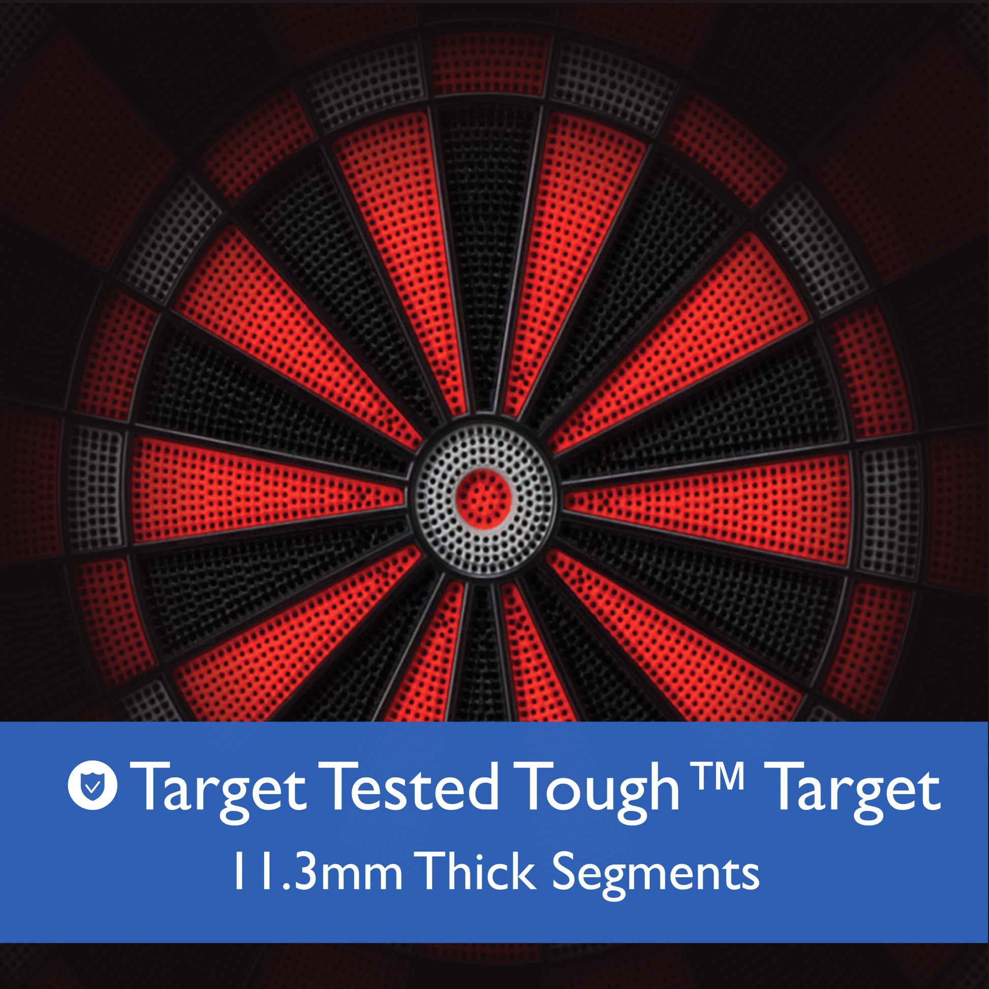 Top Quality Segments - Regulation-sized 15.5” electronic dart board target area is incredibly durable with precision engineered concave segment holes that lock in your shots