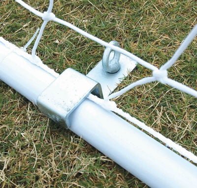 - 4mm white nets equipped with built-in net clip tracks and clips for easy installation on each end of the pitch
