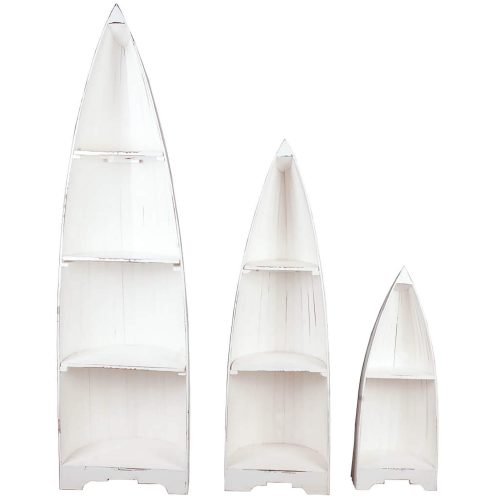 - The three charming boats are packaged together. Simply slide shelves on top of wood shelving support already attached to each piece and enjoy