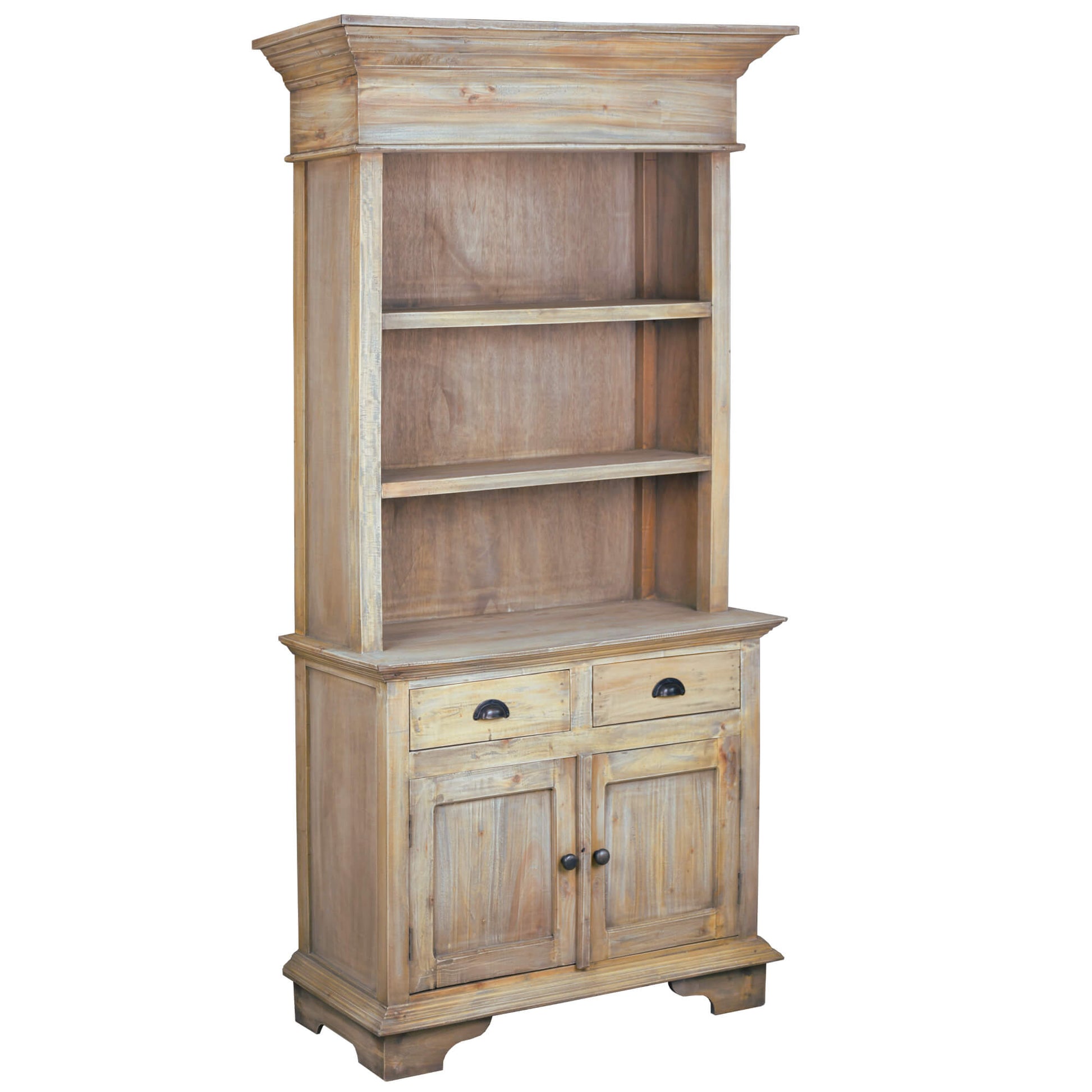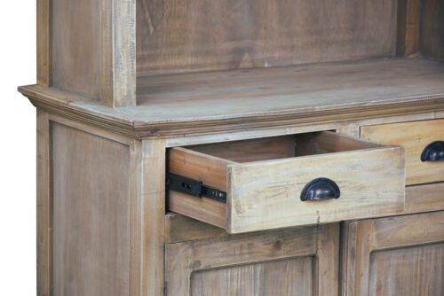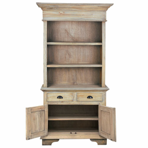 This cottage farmhouse china cupboard is handcrafted from solid mahogany wood for old world charm. Carefully and artfully built, this piece of dining room furniture provides timeless appeal. Three display shelves offer a great place to show off your cherished heirlooms, dinner plates and cookbooks. For storage, the kitchen server has two drawers, well suited for your silverware, serving utensils, or other small essentials.