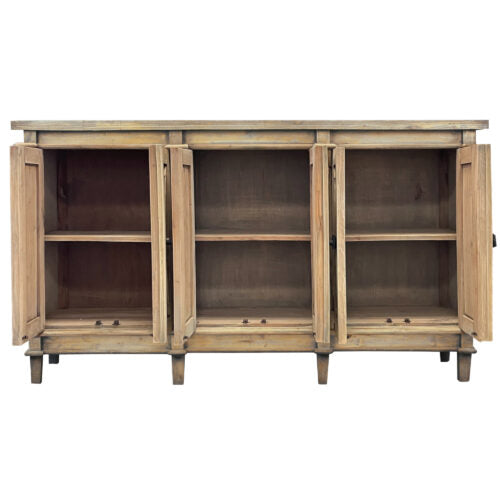 - Solid, reclaimed mahogany sideboard with six doors with carved arrow X design