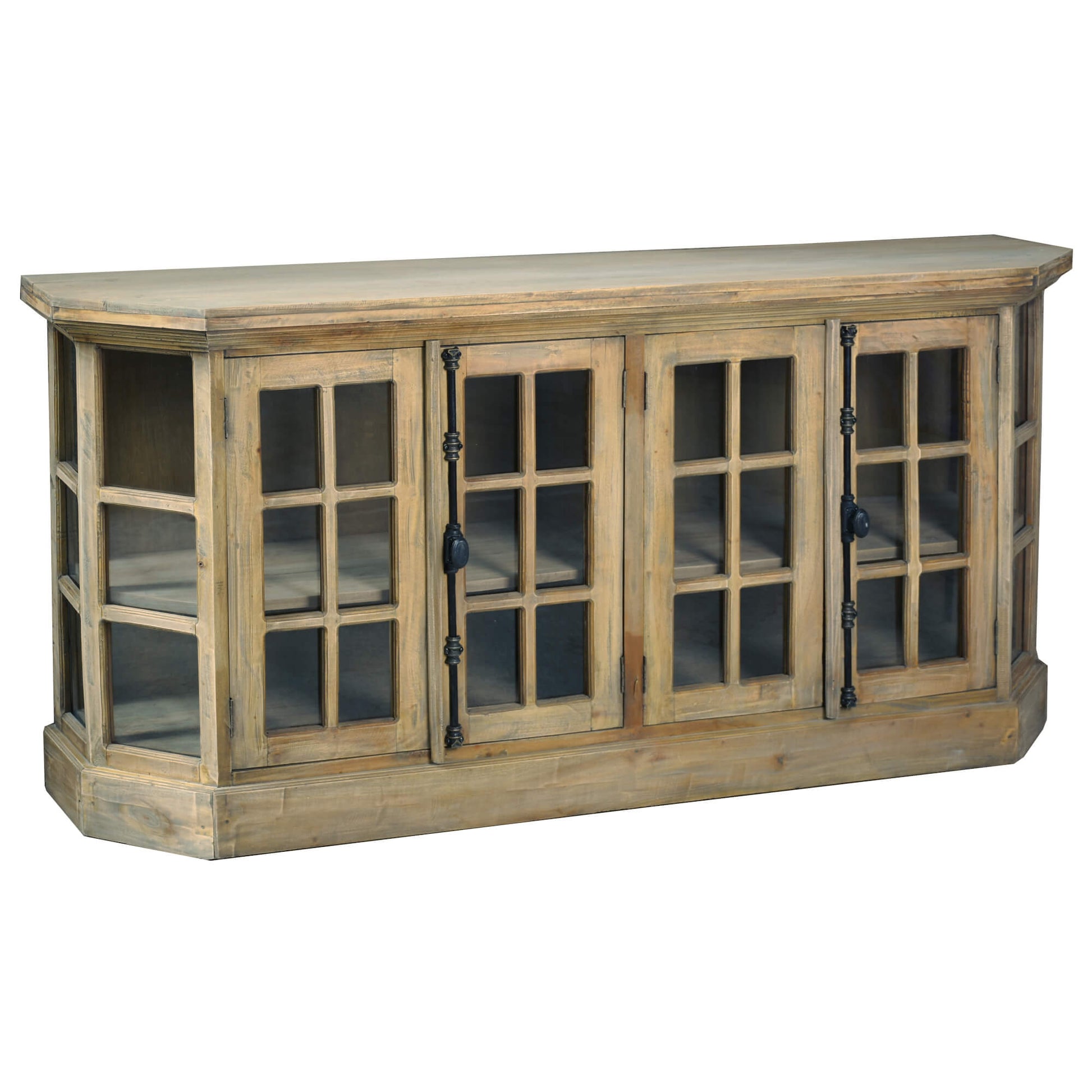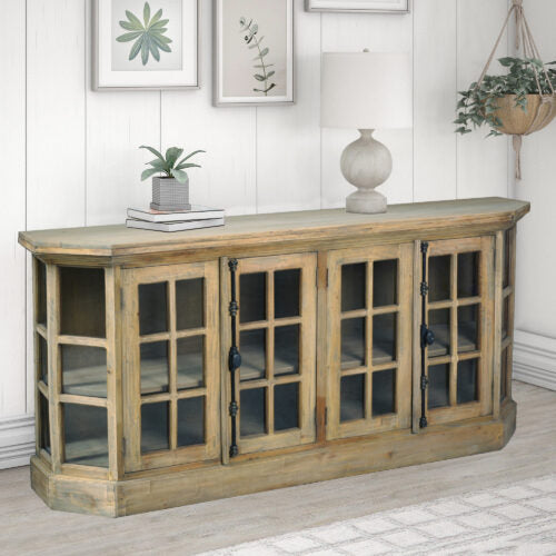 Sunset Trading Cottage 77" Window Pane Glass Door Display Credenza | Driftwood Brown Solid Wood CC-CAB924S-DW