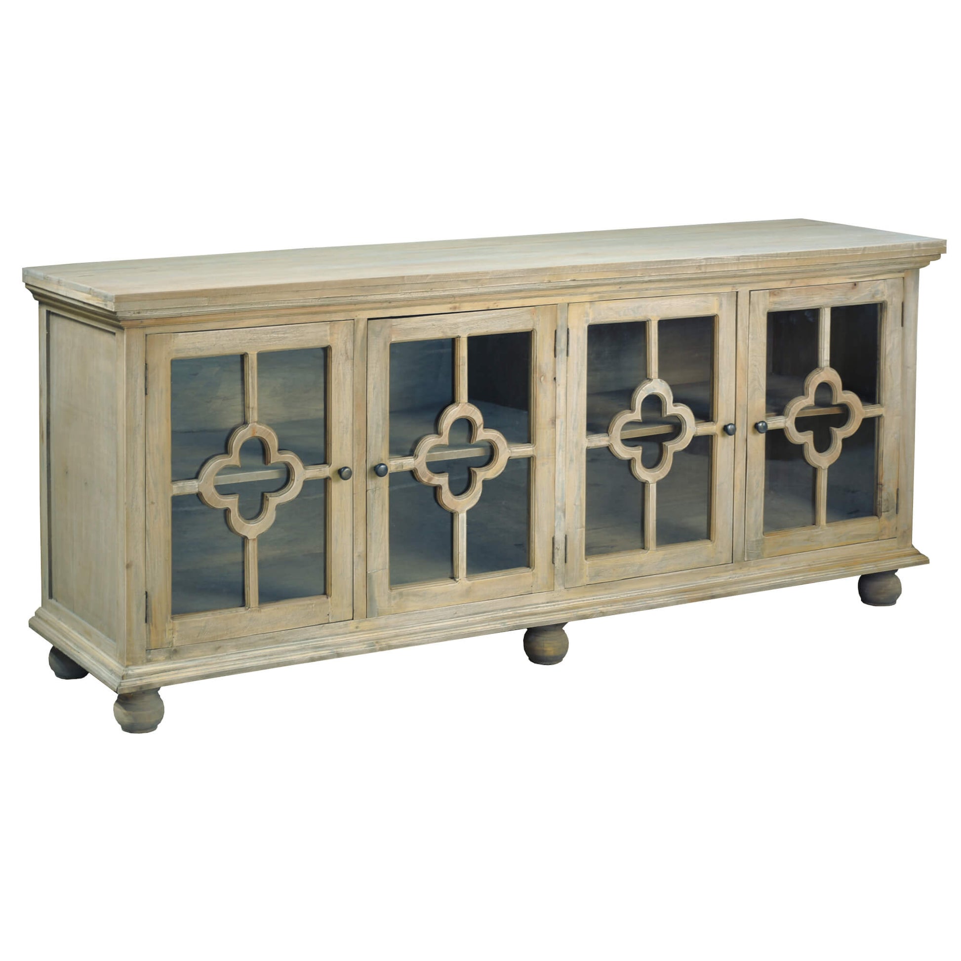 Sunset Trading Cottage 87" Clover Glass Door Credenza | Driftwood Brown Solid Wood Display Cabinet CC-CAB1781S-DW