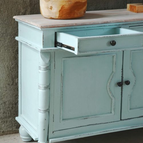 Sunset Trading Cottage Buffet Cabinet | Sky Blue/Natural Limewash Solid Wood CC-CAB1296TLD-SBLW