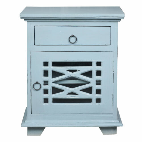 Sunset Trading Cottage Solid Wood Side or Night Table | Distressed Beach Blue Solid Wood CC-TAB808TLD-BB