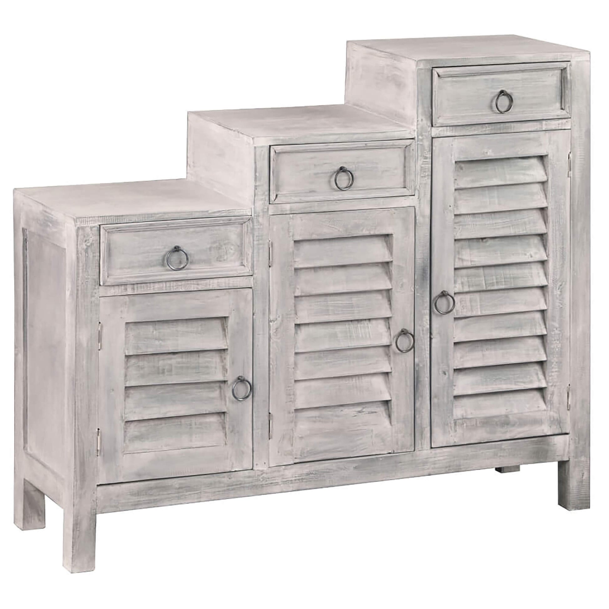 Sunset Trading Cottage Three Tiered Shutter Cabinet | Distressed Light Grey Solid Wood CC-CAB1181LD-SW