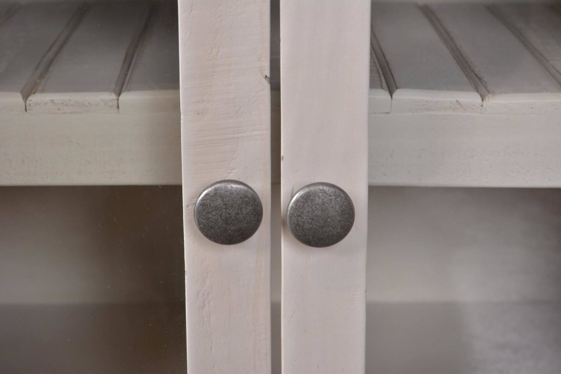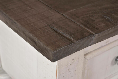 - Hand rubbed off white paint with dark brown stain that highlights the beautiful grain pattern
