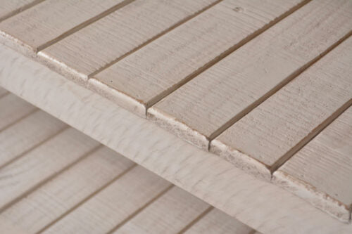- Hand rubbed off white paint with dark brown stain that highlights the beautiful grain pattern